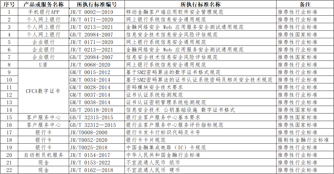 根据《中华人民共和国标准化法》有关规定,现将本溪银行股份有限公司提供的金融产品和服务所执行的标准情况公开如下。本次声明公开的信息统计截止2024年9月18日。